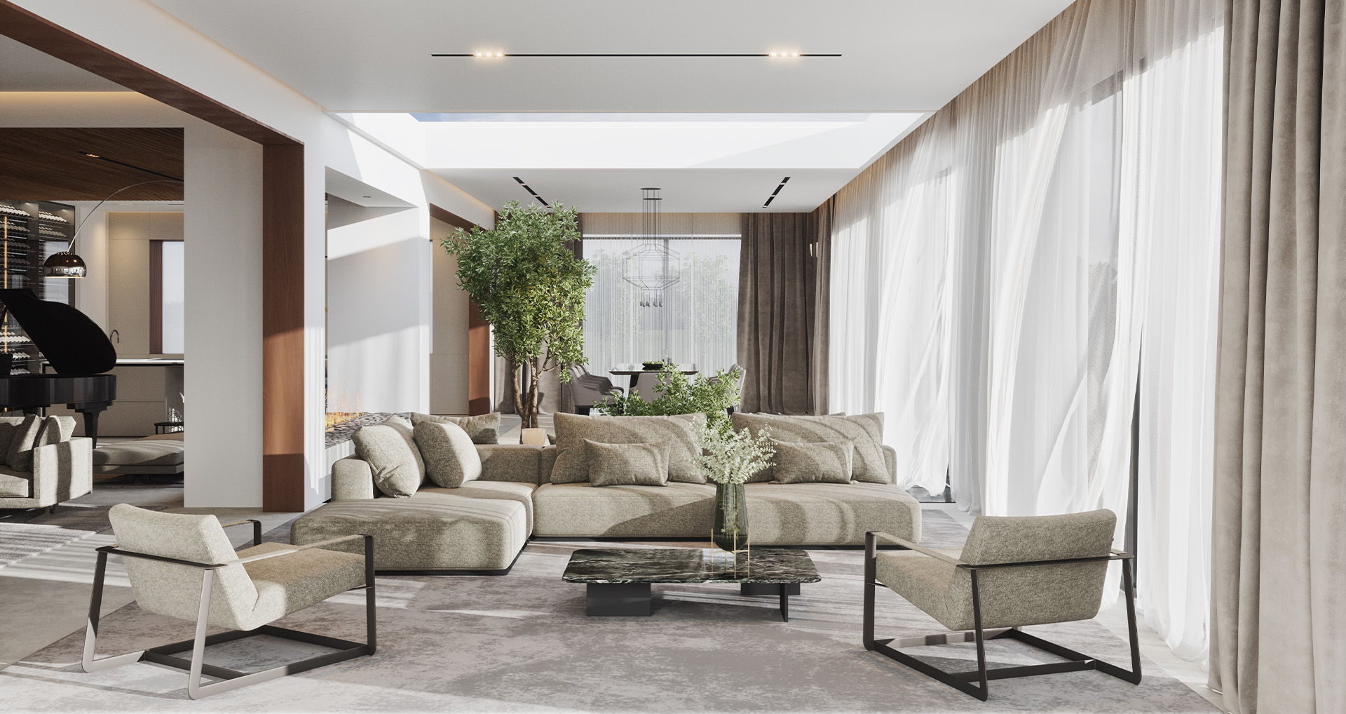 This exclusive architectural project was conceived for a family with a deep appreciation for Italian luxury design, drawing inspiration from the timeless aesthetics of Poliform and Minotti. Defined by a contemporary, minimalist, and refined style, the villa is a statement of essential geometry, harmony, and lightness. It spans five levels, including two underground floors, and was designed to offer maximum comfort, functionality, and visual continuity. The interiors feature a private indoor swimming pool, wellness area, and state-of-the-art gym, all meticulously integrated into a space where every detail has been carefully curated. A neutral color palette—white, beige, grey, and black—amplifies the sense of elegance, while natural wood, used as the main material, brings warmth and sophistication. Innovative solutions and premium materials ensure a perfect balance between form and function, creating a home designed to last and inspire.