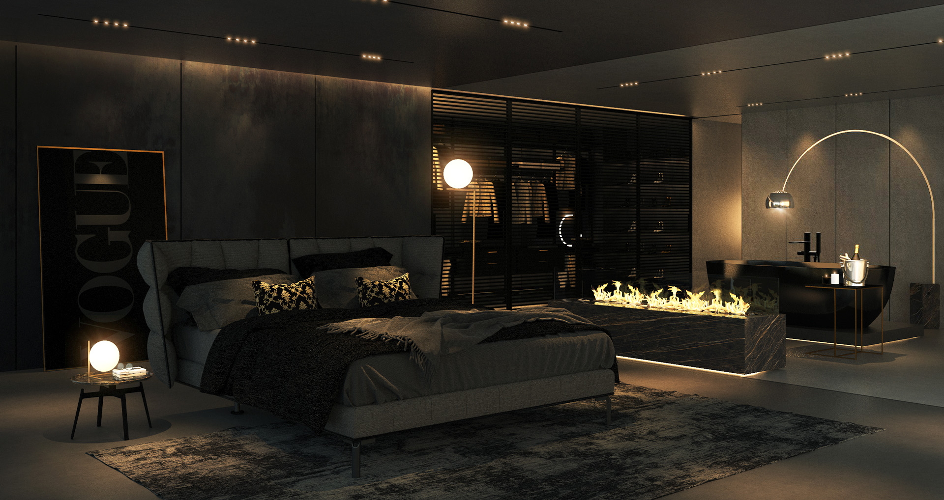Located on the 20th floor in the garden city of Hangzhou, this luxury apartment was designed for a businesswoman seeking elegance, functionality, and a private retreat during her travels in China. The client envisioned a space that would reflect her strong, confident personality—while also serving as a refined setting for professional dinners and gatherings. The interiors are defined by bold black feature walls, refined materials, and a carefully curated palette of greys and balanced white surfaces, creating a sophisticated and timeless atmosphere. Metallic accents, created in collaboration with the artist De Castelli, introduce a distinctive, contemporary aesthetic. The lighting design is subtle and nearly invisible—crafted to enhance every line and surface without distraction. Nearly half of the apartment is dedicated to the master suite, which includes a spacious walk-in wardrobe tailored for the client’s collection of shoes and handbags. At its center stands a B&B Italia king-size bed, separated from a striking black bathtub by Antonio Lupi, flanked by an elegant linear fireplace—creating an intimate and luxurious retreat within the home.