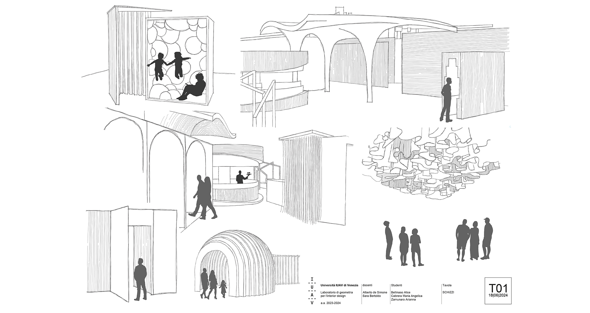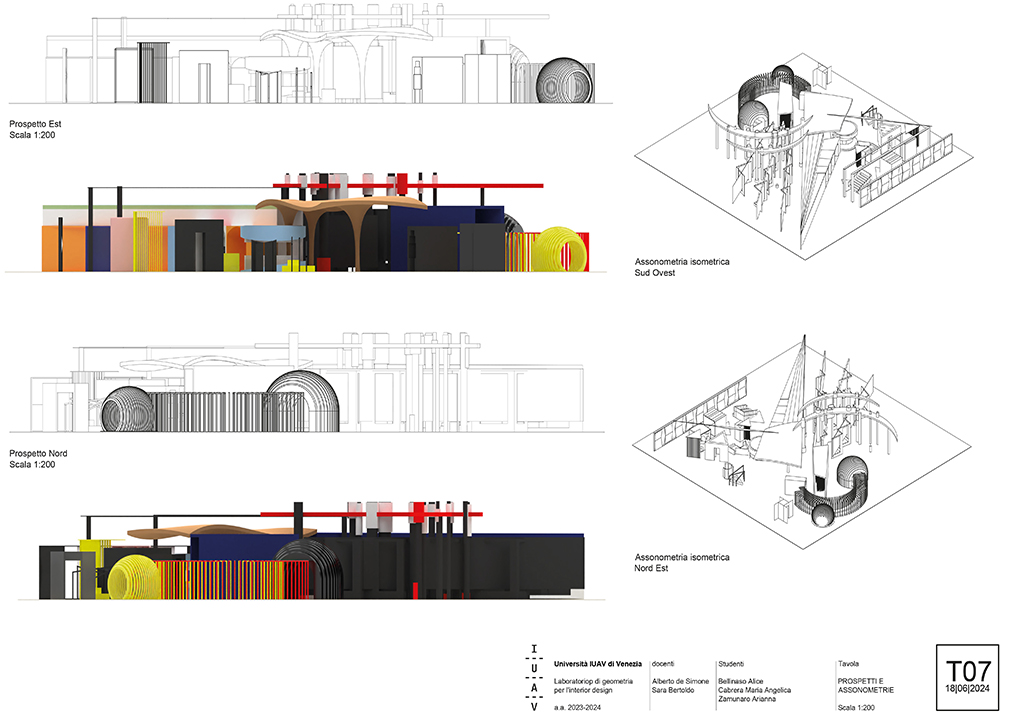 The artwork, originally composed of “points, lines, and surfaces,” is reinterpreted as an overhead view. By learning the fundamentals of two-dimensional and three-dimensional geometry, students analyzed and deconstructed every element of the painting. They then designed and modeled structures that breathe new life into the artwork, creating innovative spaces and uses.