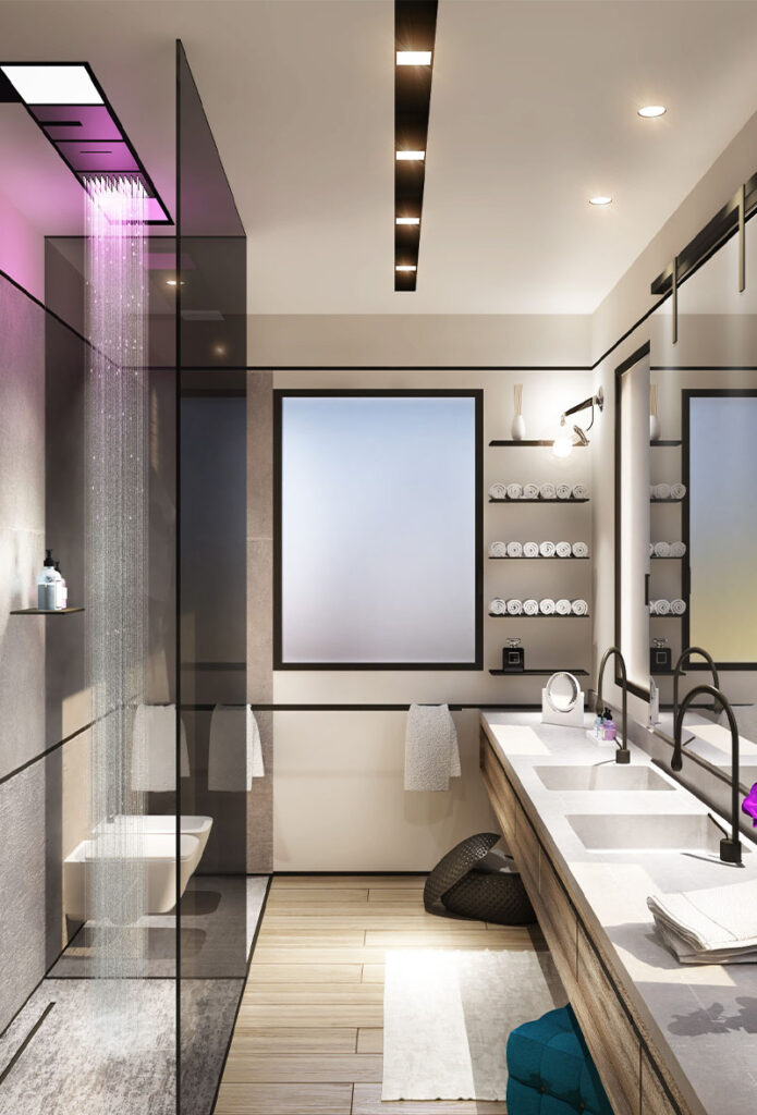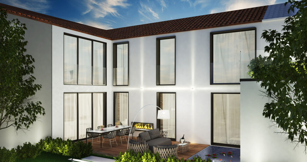 This project focused on the modern renovation of a historic building, blending advanced technology with the homeowner’s deep passion for koi carp. A prominent figure in the social media marketing world, the client envisioned a space that combined architectural innovation with a strong personal narrative. The architectural and functional upgrade prioritized sustainability, integrating smart home systems tailored to contemporary needs—without severing ties with tradition. A defining element of the design is the symbolic journey of the koi carp: swimming from the outdoor pond into the home, their colorful presence passes beneath a suspended staircase that connects the two floors. The upper level was engineered to appear as if it floats within the space, thanks to a cutting-edge structural solution that removed the need for vertical supports. This sense of lightness is further amplified by a structural glass corridor, seamlessly embedded within the walls and ceiling—without any visible metal framework. This choice created a visual continuity from the ground floor to the exposed white beams of the roof, enhancing spatial openness and brightness. On the exterior, the building honors the materials and tones of the original structure. A modern extension hosts the upper floor and a generous terrace designed for relaxation and social moments. Complete with a jacuzzi and a barbecue area, the terrace becomes the ideal stage for gatherings, entertainment, and leisure.